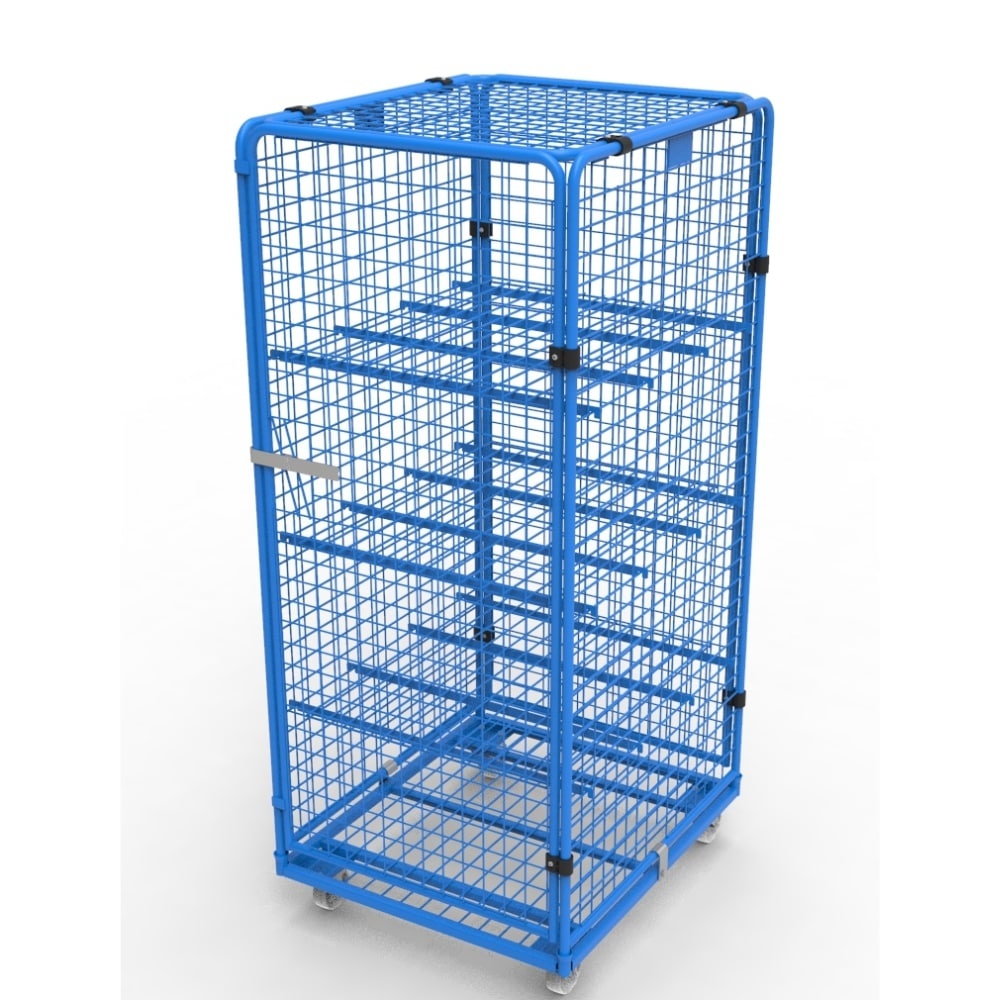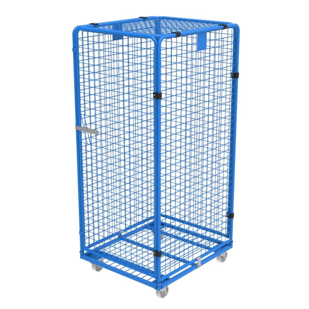 Anti Theft Roll Container Security Container. Made entirely of metal and equipped with one opening door. Indispensable for the safe movement of your products thanks to the 50 × 50 mm mesh and the roof.