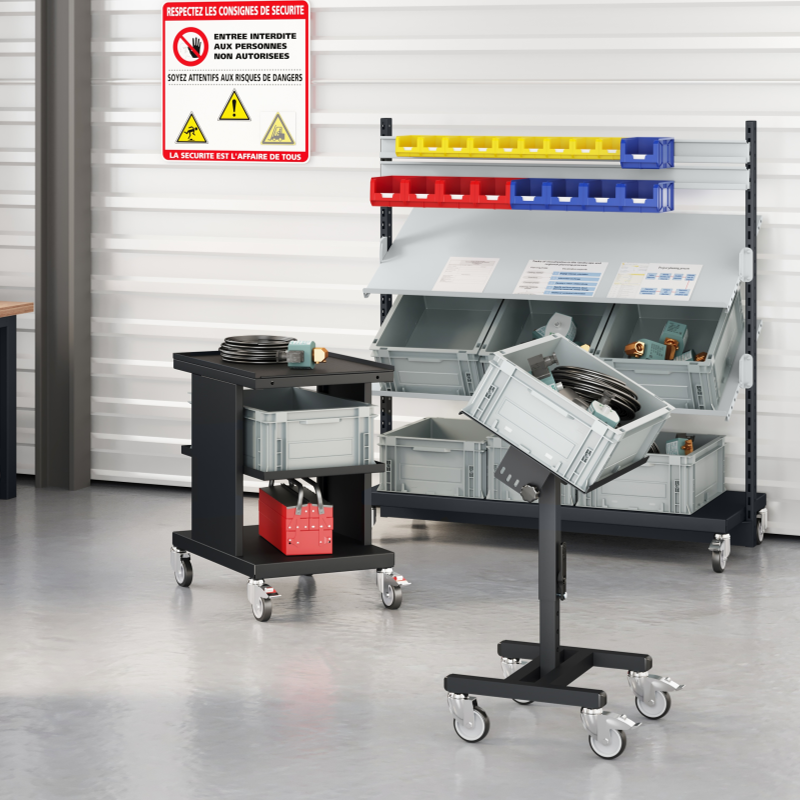 The rails comes in 3 different lengths 635mm 865mm1300mm. 2 possible positions for the grab containers rails: vertical or inclined 15° forward. Max load 50Kg