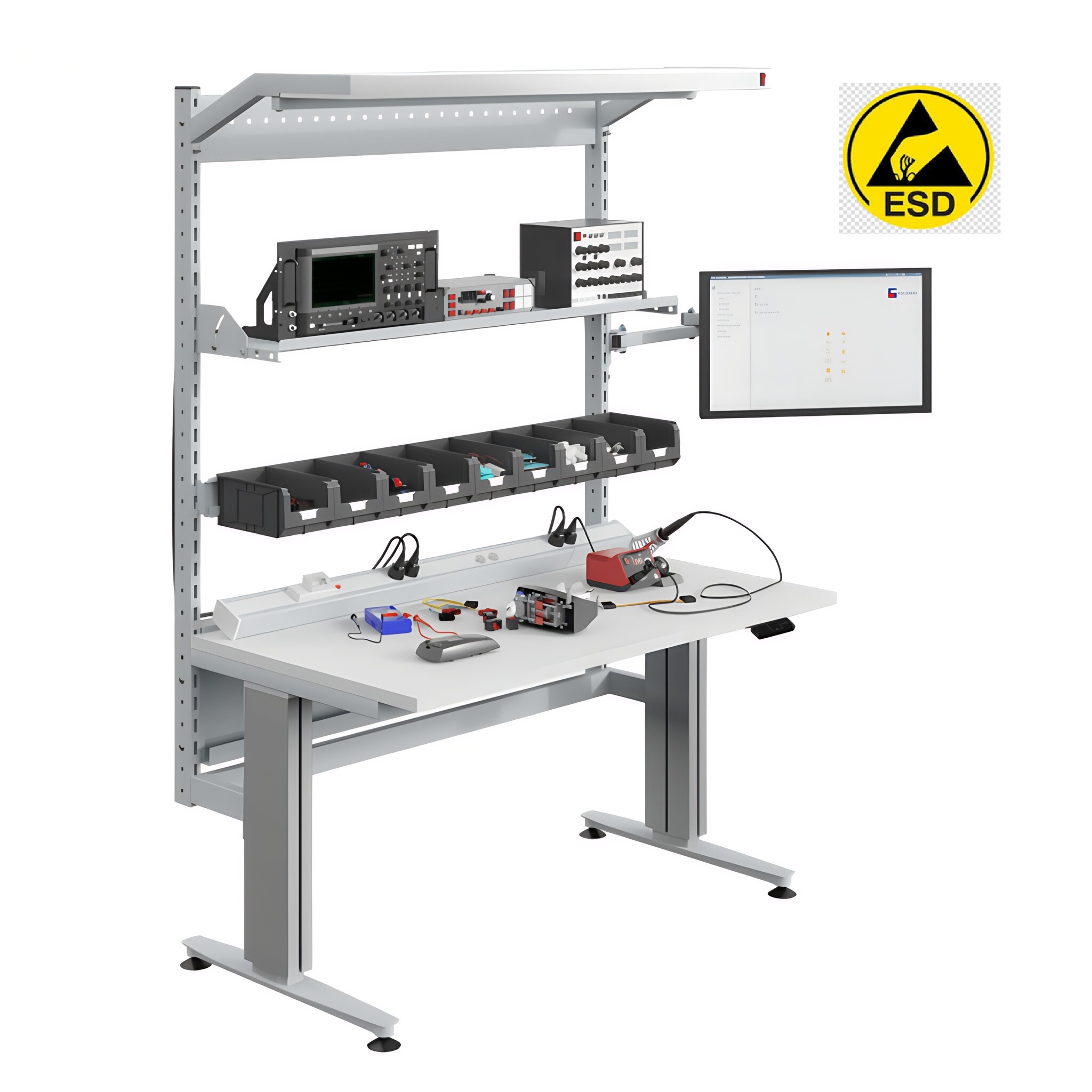 - ESD-safe workstation setup: Anti-static laminated worktop supports ESD control in sensitive environments