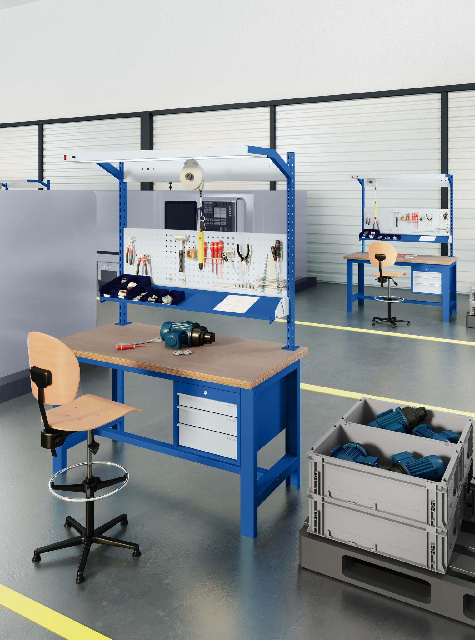 Furniture configuration, functionality, ergonomics, bulk, modularity, versatility, finishes (such as on work surfaces) and style can be adapted to suit the trades using them and the manufacturing process stages. An effective response to the flexibility that companies need includes accessorizing, adjustable settings and mobility.