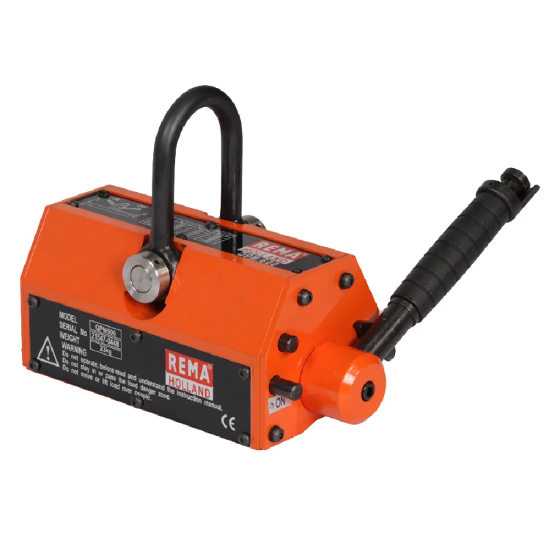 REMA QPM permanent lifting magnets can be used as grabs in lifting and hoisting applications for horizontal and vertical materials handling in stores, steel construction manufacturing plants, machine and assembly bays, etc.