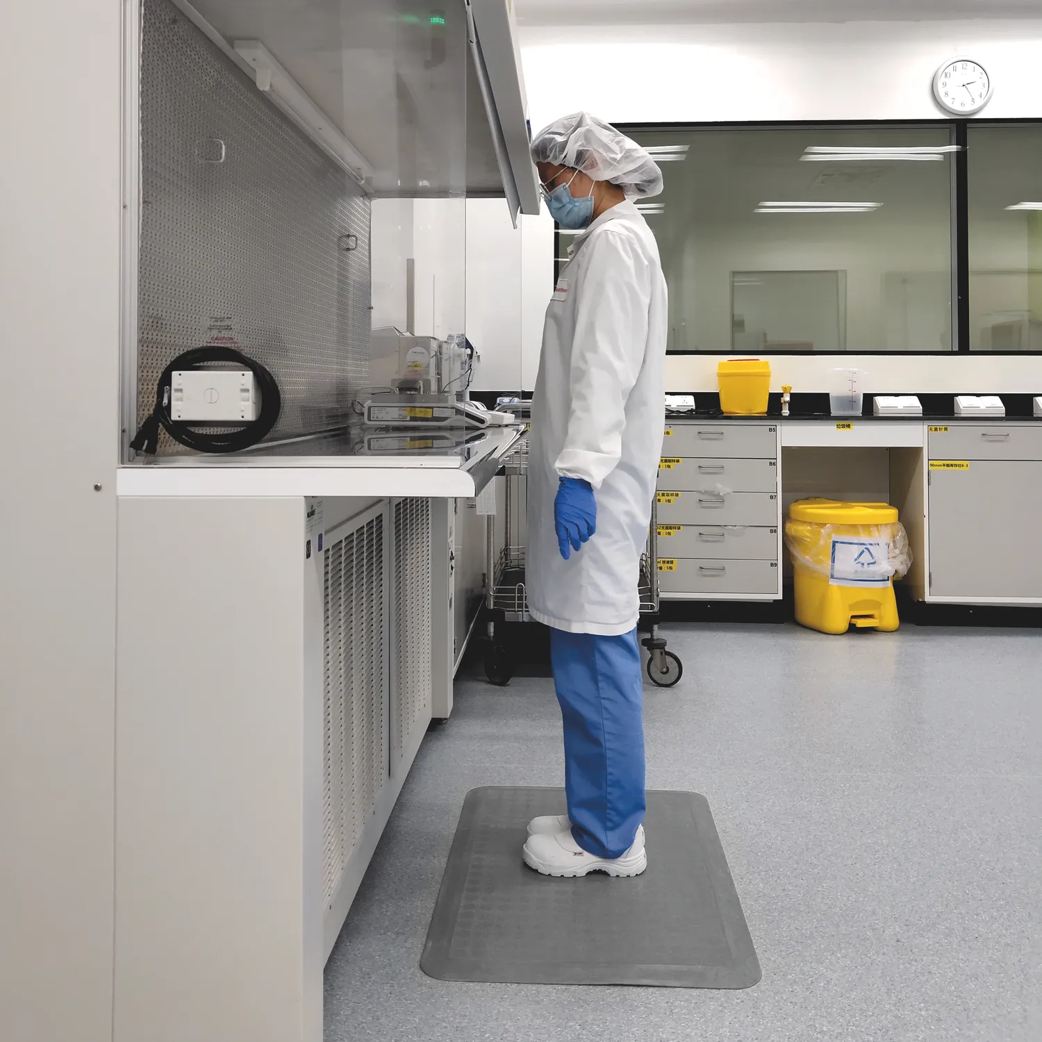 Ergonomics and Comfort Thanks to its unique underside design, this mat provides superb anti-fatigue properties. With an overall thickness of 12.7 mm, the mat reduces strain on the joints and muscles of employees who spend long hours standing.