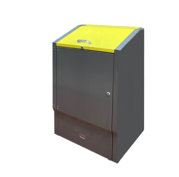 RAL colors on demand, prepared for anchorage to the ground. 2 sizes (120/240L) and 2 models (flap/hood)