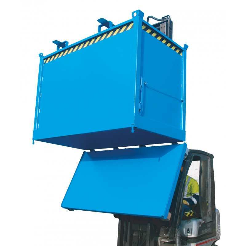 Conteneur à copeaux à fond articulé avec œillets de levage Convient pour chariot élévateur et grue.