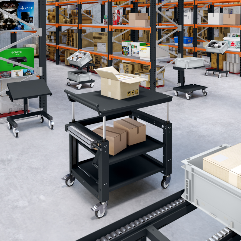 - Chariot de mise à hauteur pour bacs, pièces et outillage