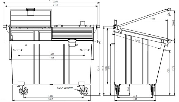 Poubelle de collecte à 4 roues 2500 litres en acier galvanisé avec couvercle