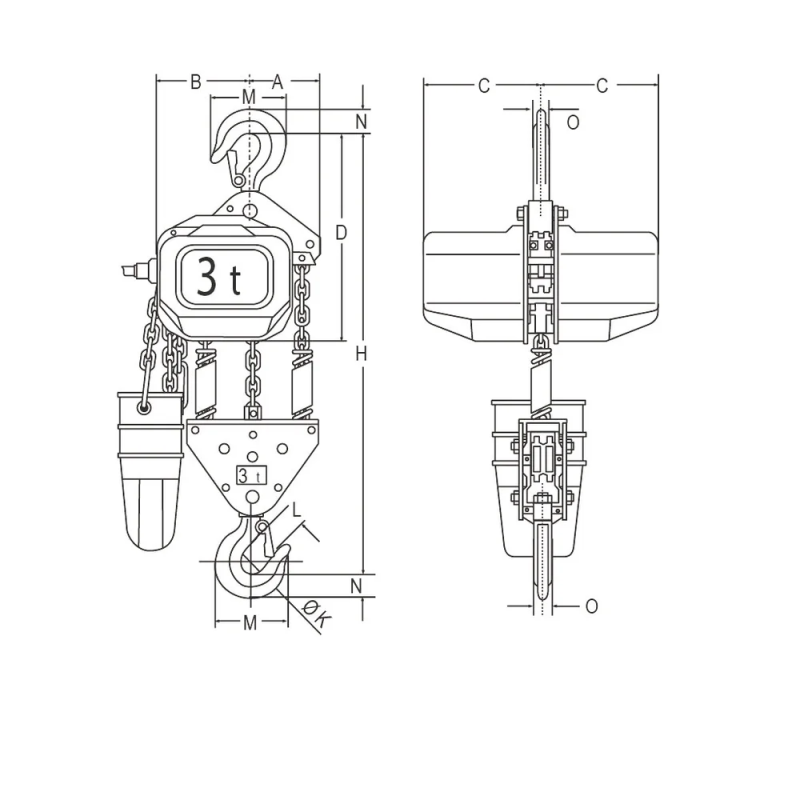 Elephant FBH 400 V 2 vitesse Palan Électrique à Chaîne – 0,5 – 3 t – Hauteur de levage 3–10 m