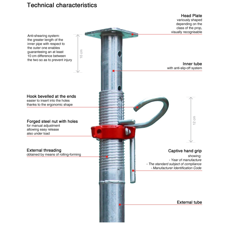 Voici les caractéristiques de notre étai EURO « DIN EN 1065 » :