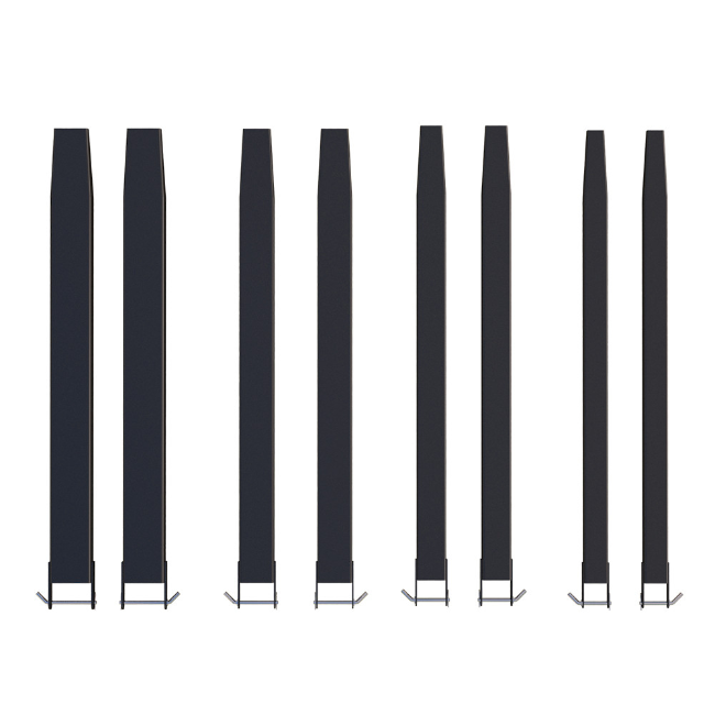 Grâce à leur construction robuste en acier et à la goupille de sécurité fiable, vous faites simplement glisser les rallonges sur les fourches existantes de votre chariot élévateur et vous les verrouillez en toute sécurité. Idéal pour les entrepôts, centres logistiques, sites de production et chantiers où des palettes longues, profils ou charges non standard sont fréquemment déplacés.
