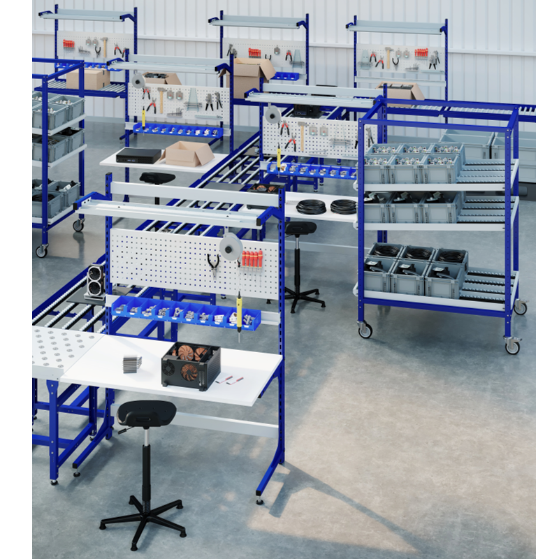 De transporttafels kunnen zijdelings in lijn met werkstations worden geplaatst.
