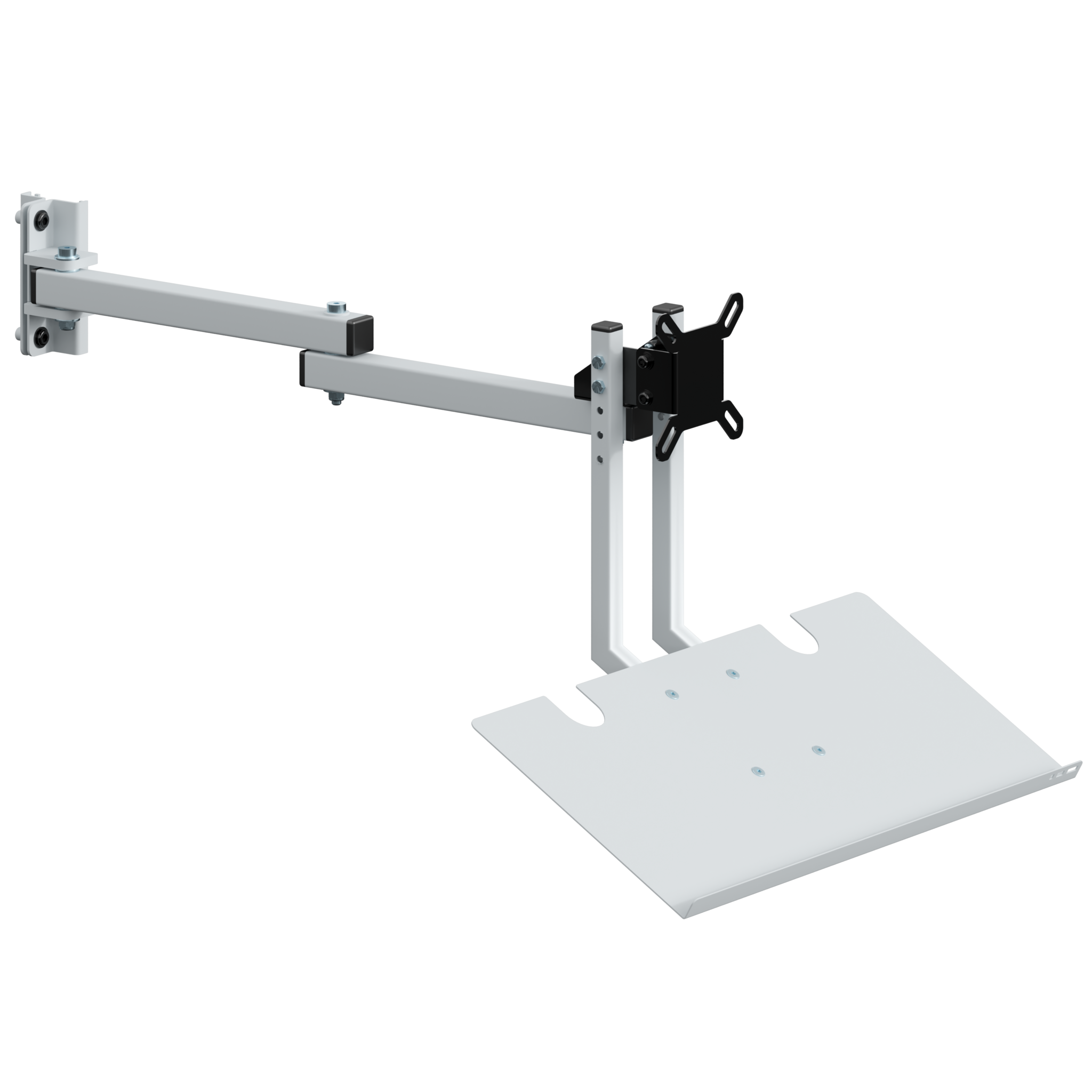 Werkplek met metalen structuur geperforeerd profiel met totale hoogte van 1950 mm verstelbare hoogte met 50 mm verhoging. Draagvermogen 150 kg. Keuze uit lengte 925 mm of 1360 mm Depte 695. 5 jaar garantie. Gemaakt in Frankrijk